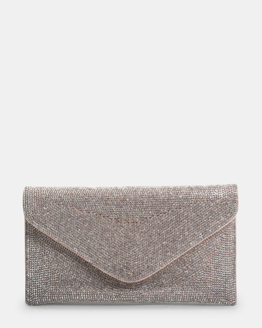 De minuscules strass recouvrent le visage de BKOKO, transformant ce sac enveloppe simple en un modèle étincelant. Portez ce nouveau favori flashy en bandoulière ou glissez sa délicate bandoulière en chaîne à l'intérieur et portez-le comme une pochette.