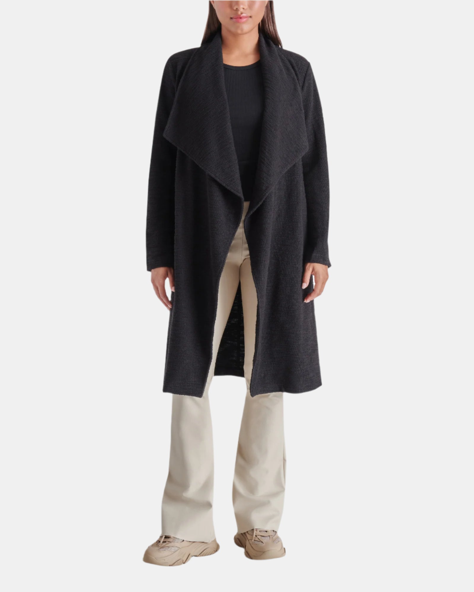Veste En Tricot Slub Drapé Sur Le Devant Noire