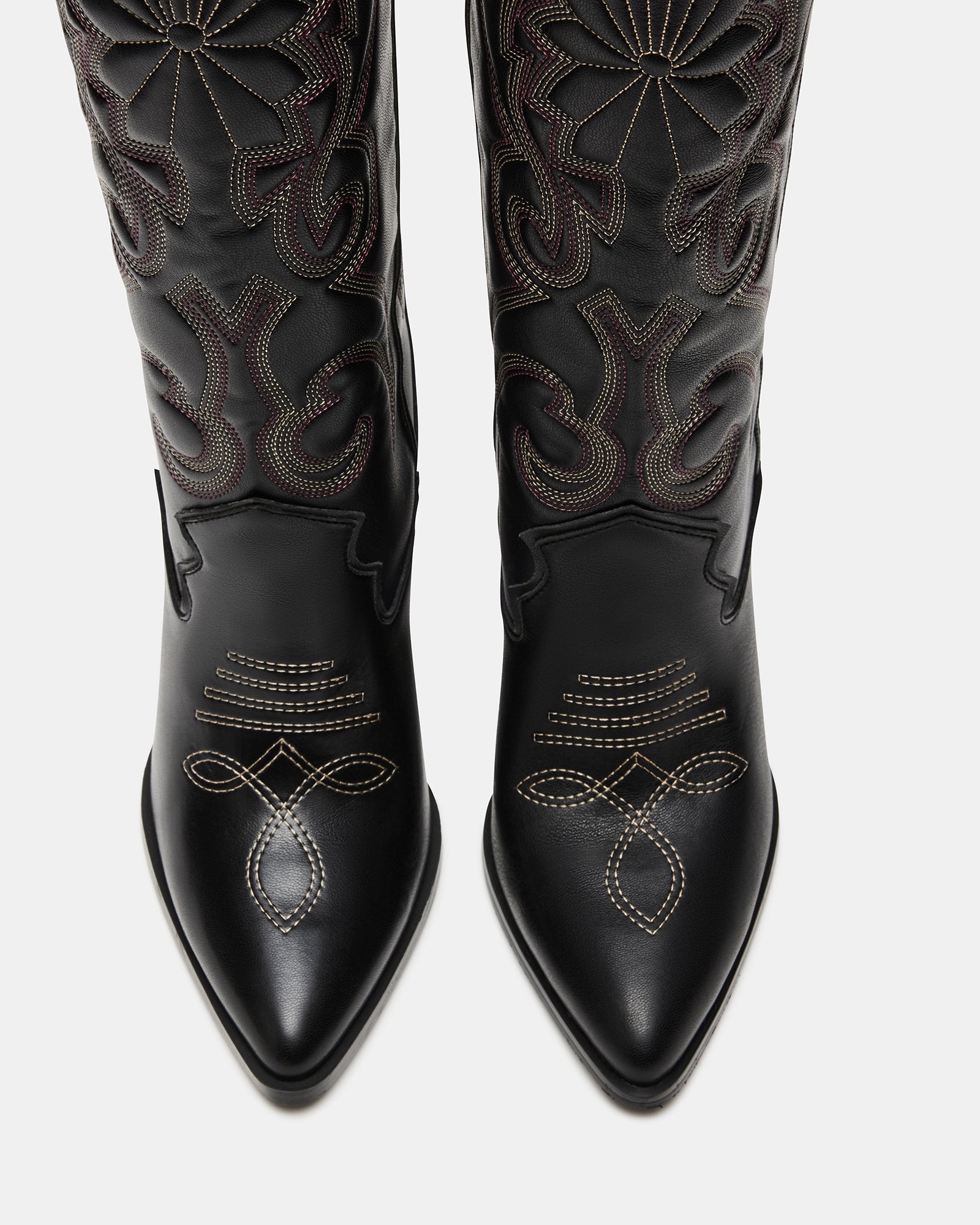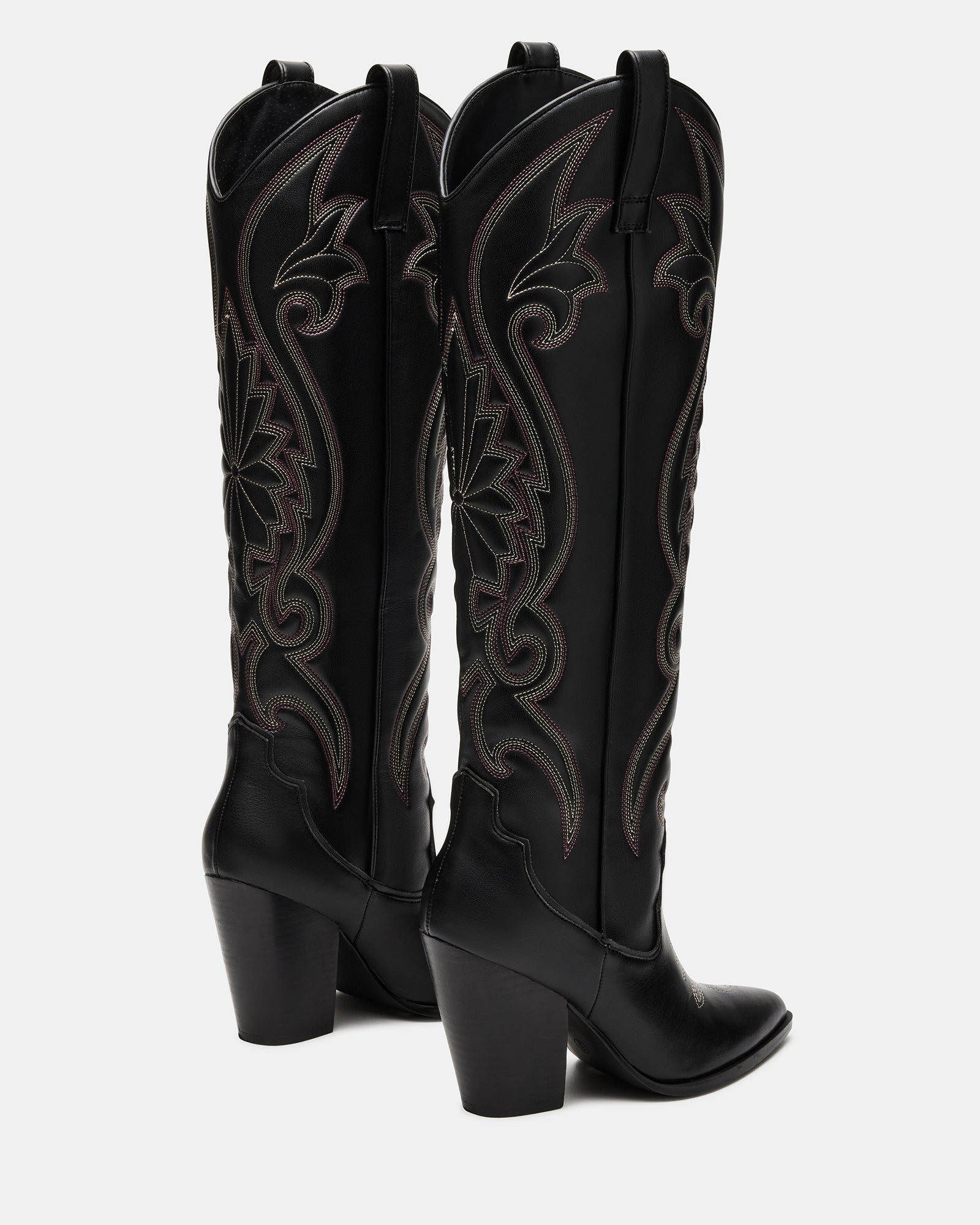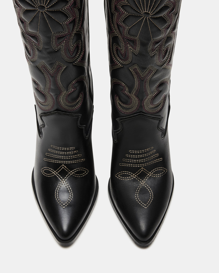Les bottes western sont indispensables à toute garde-robe et nous sommes obsédés par LASSO. Cette paire montant jusqu'aux genoux présente des détails de surpiqûres et un talon bloc imposant.