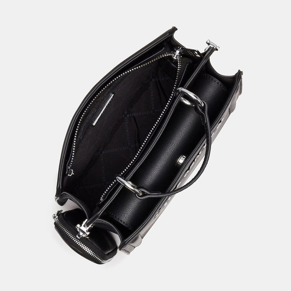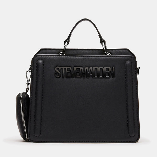 Clever interior organization and a matching modular zip pouch give the compact BEVELYNN bag a surprisingly roomy storage. Reinforced edges, structured side gussets, and custom hardware add to the substantial look and feel of this top-handle design.