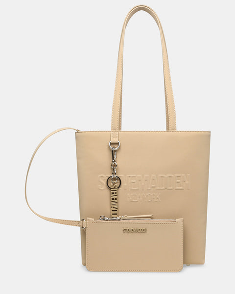 Expertly crafted for style and convenience, the BILLIE bag is the perfect accessory for any fashion-forward individual. The shoulder strap tote bag features a removable pouch and attachable logo key charm, while the interior pouch back wall and top zipper closure provide added functionality. Stay organized and on-trend with this must-have bag.