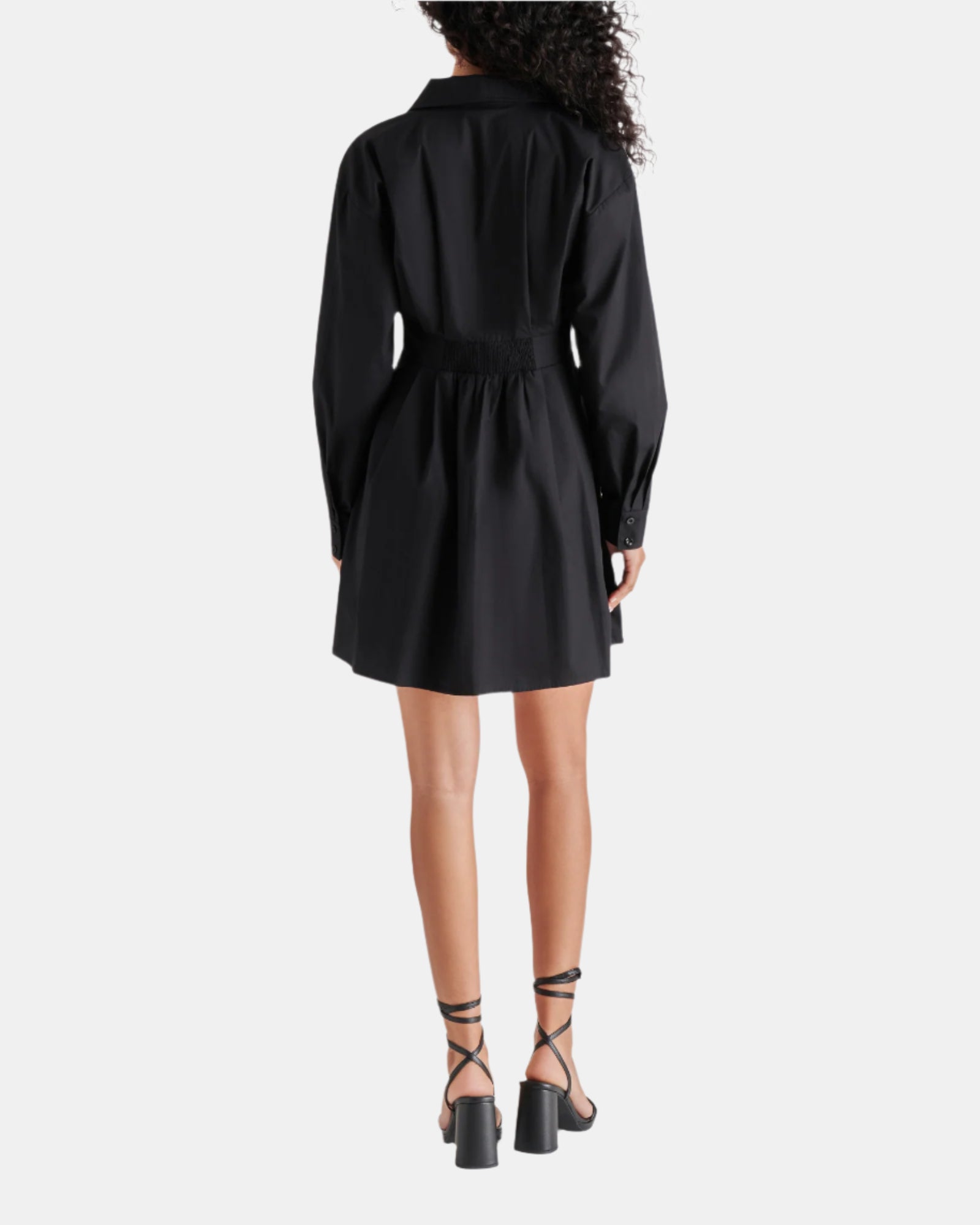 The ARIA is a must-have for your wardrobe. The menswear-inspired design features a corset waist and back waist smocking for a flattering fit-and-flare silhouette. Made from soft cotton poplin, this light blue mini dress will be your go-to for any occasion.