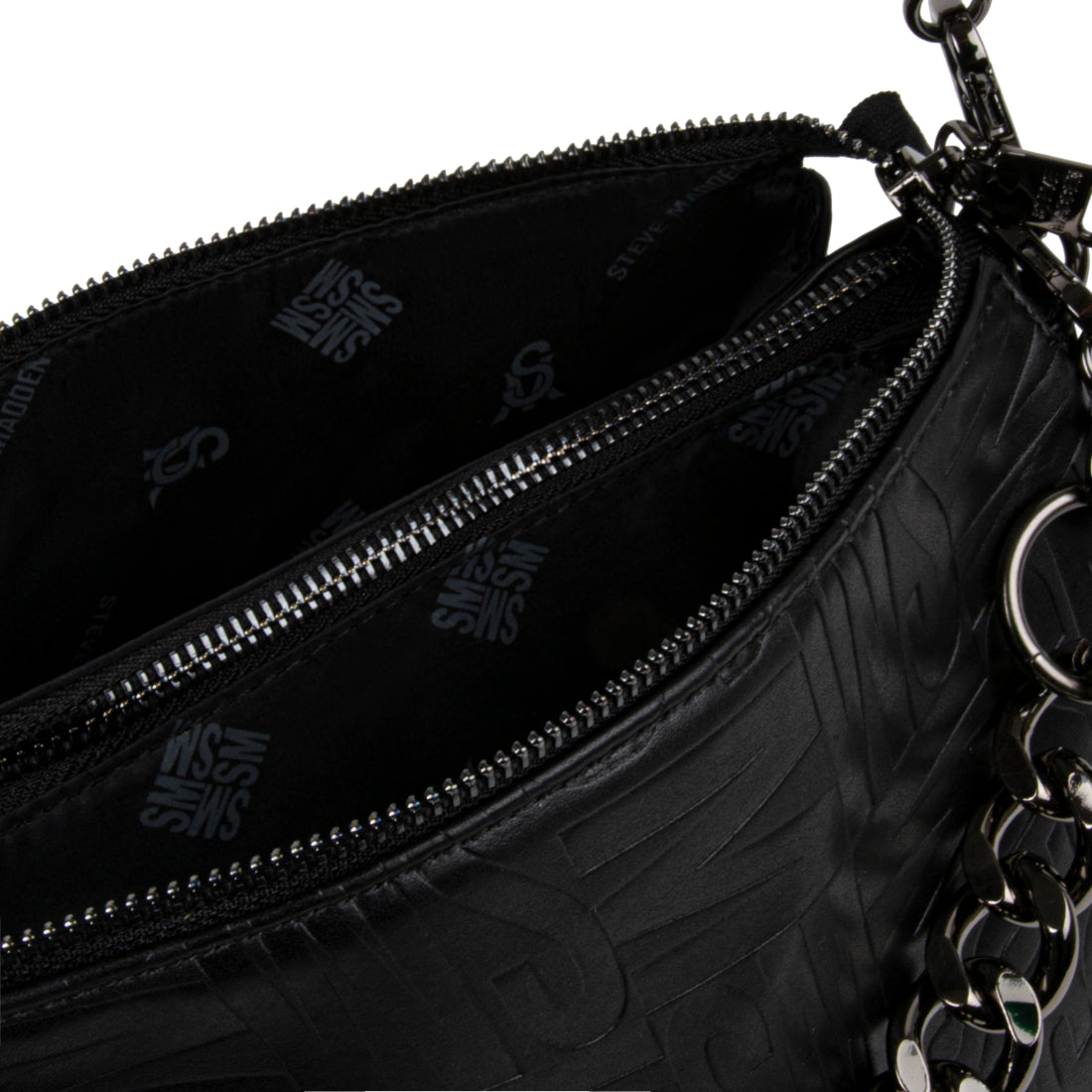 • Silver hardware drop chain