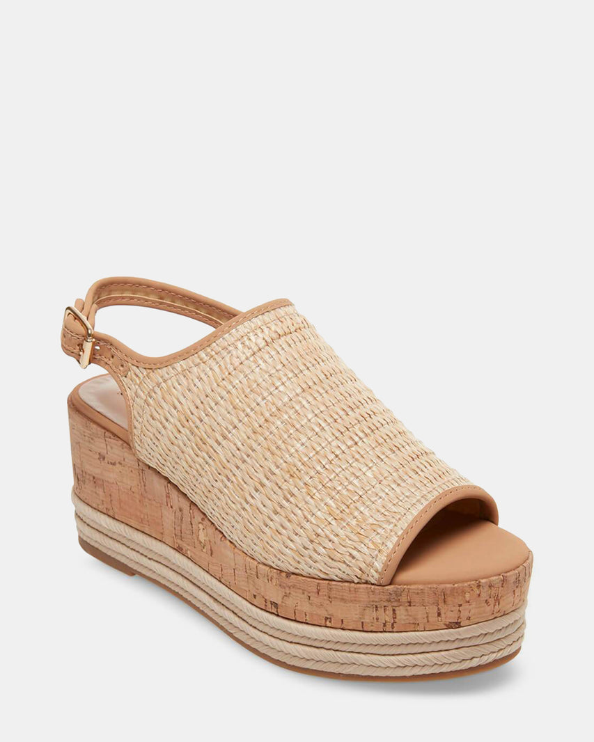 Earthy babes, meet CIERA. This sandal’s trendy slingback wedge silhouette is cute, comfortable and perfect for bohemian getups in rustic cork and straw.