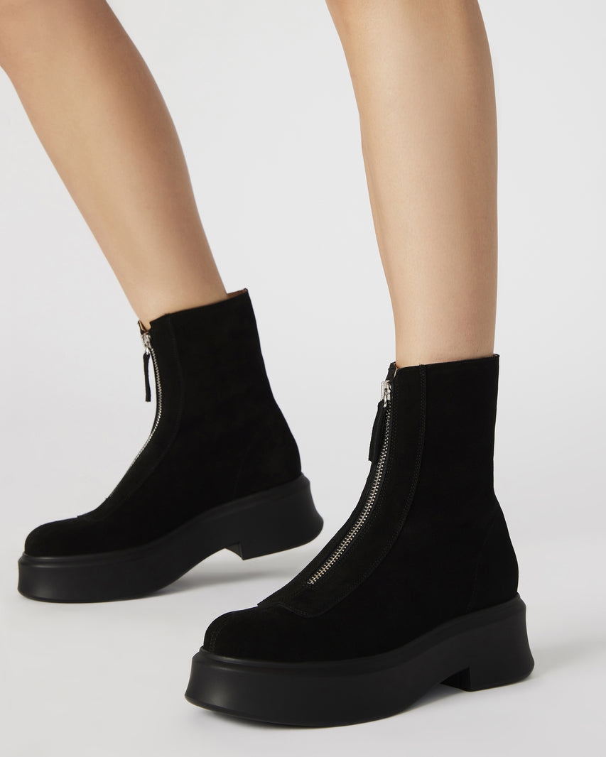 Experience style and comfort with the JONES ankle boot. The sleek design and front zipper detail add a touch of modernity to any outfit. Made with durable leather, these ankle booties are perfect for everyday wear.