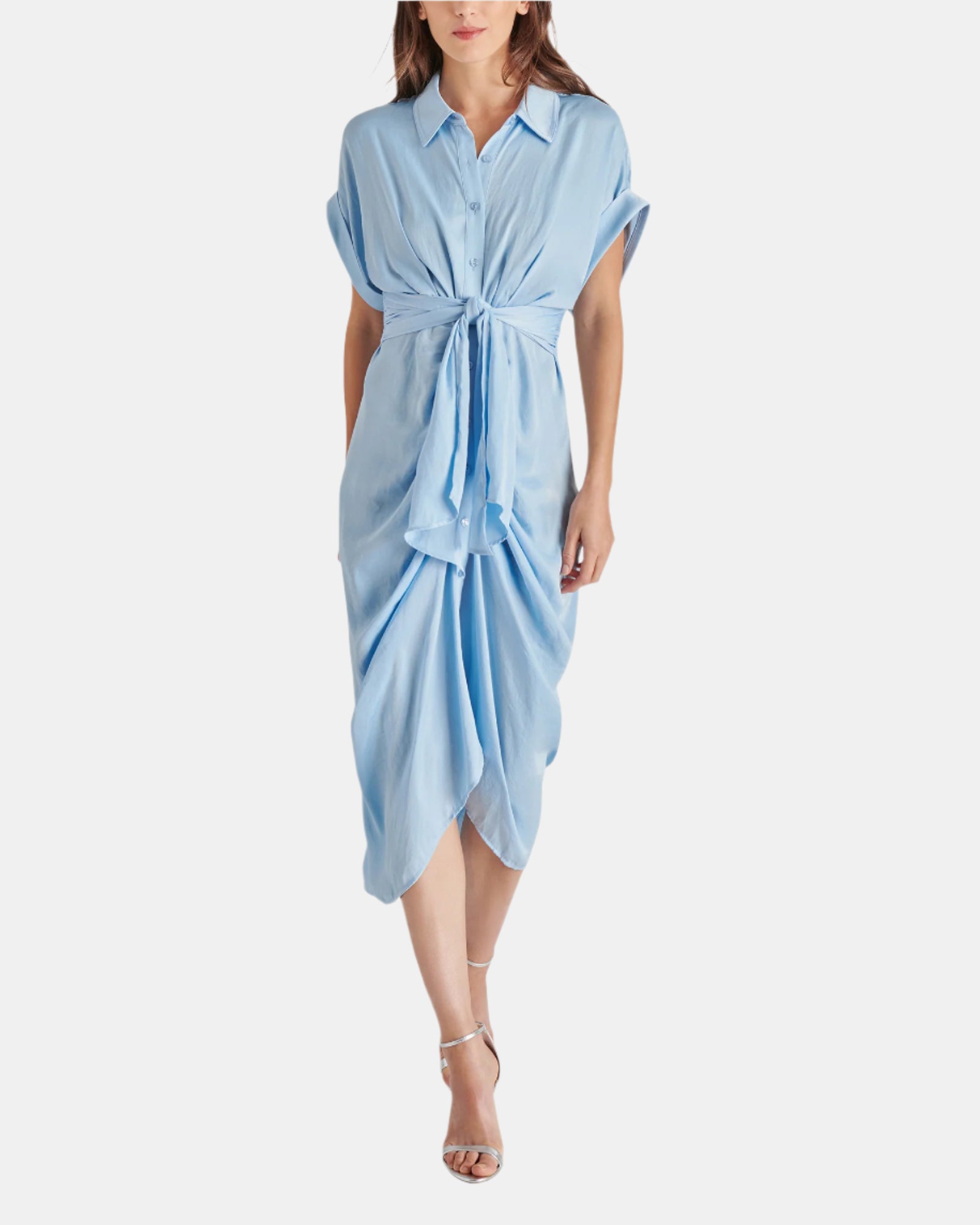 • Waist tie, high-low hem