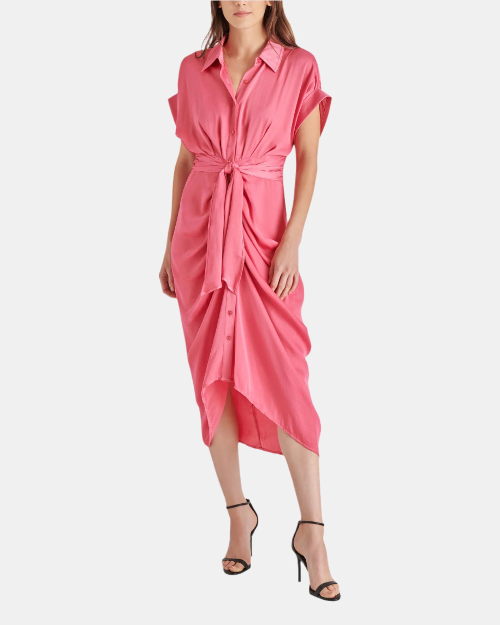 • Waist tie, high-low hem